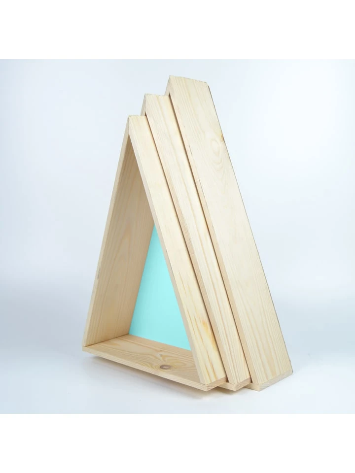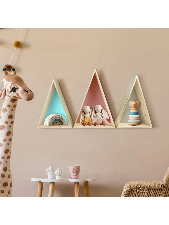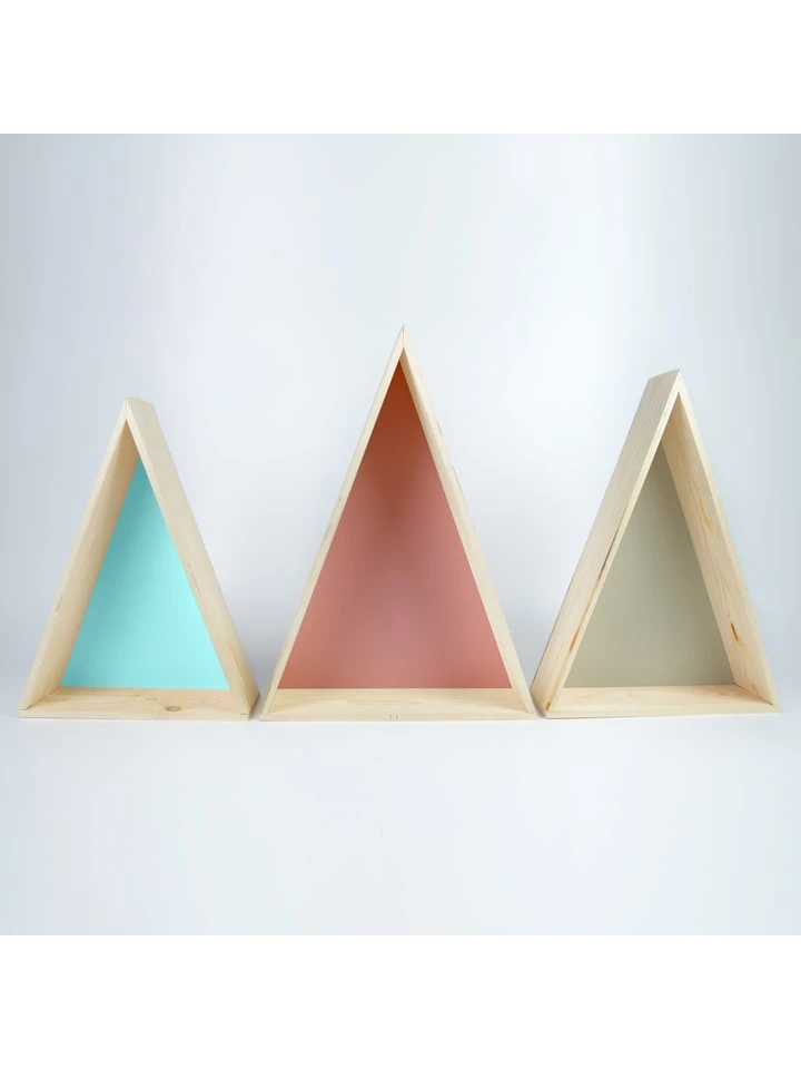 3er-Set: Wandregale „Triangle“ In Hellblau/ Hellbraun/ Rosa