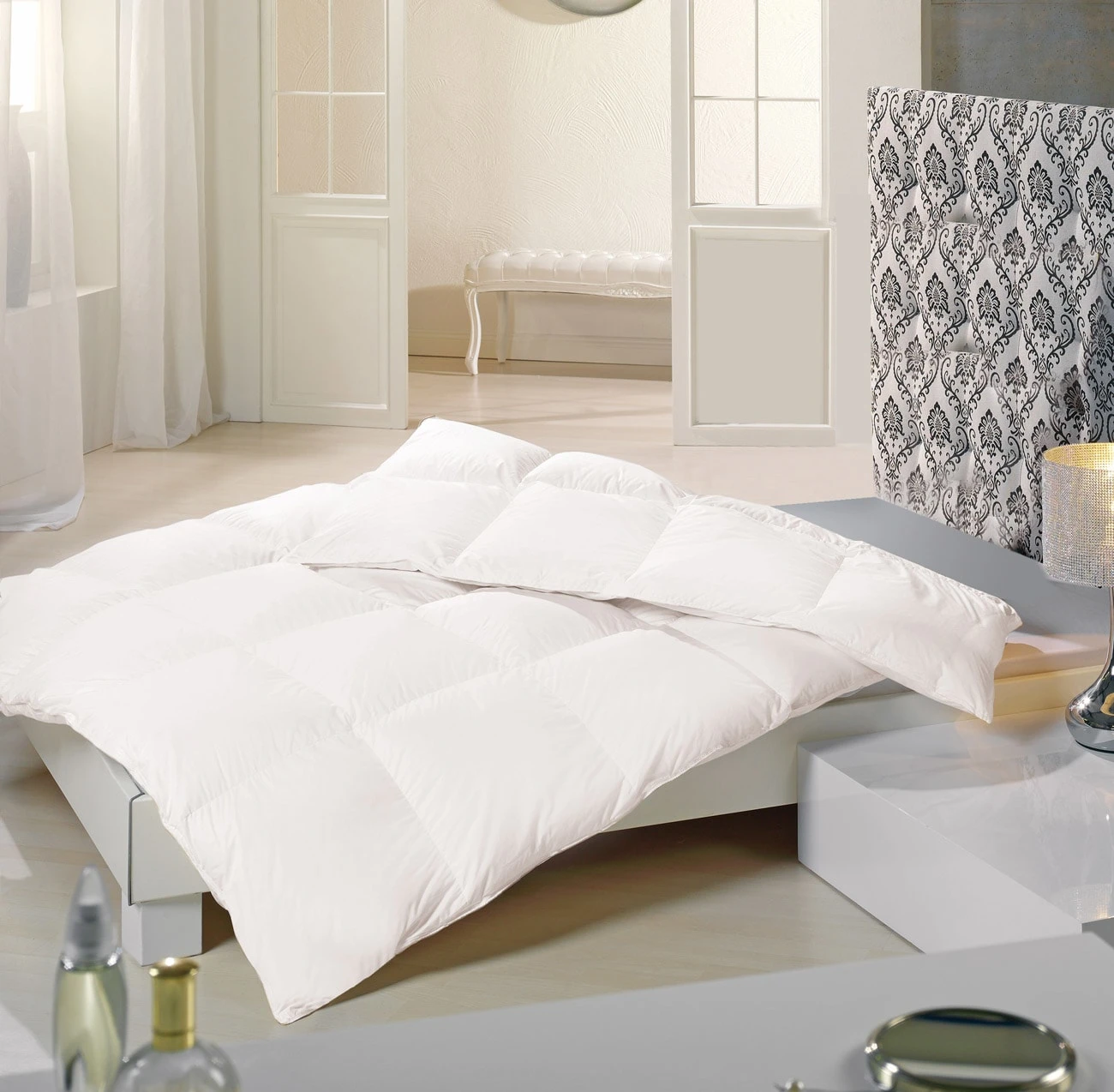 Daria Bettdecken sind mit extra großflockigen Gänsedaunen gefüllt und versprühen so die voluminöse Bauschigkeit dieser Daunenfüllung
