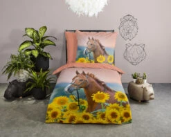 Kinder-Wendebettwäsche Horses, Baumwolle, Blau/grün, 135 X 200 + 80 X 80 Cm