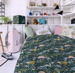 Kinderbettwäsche Aus Satin, Dinosaurier, 135 X 200 + 80 X 80 Cm