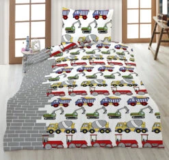 Kinderbettwäsche Baufahrzeug, Renforcé, Grau, 135×200 Cm + 80 X 80 Cm…