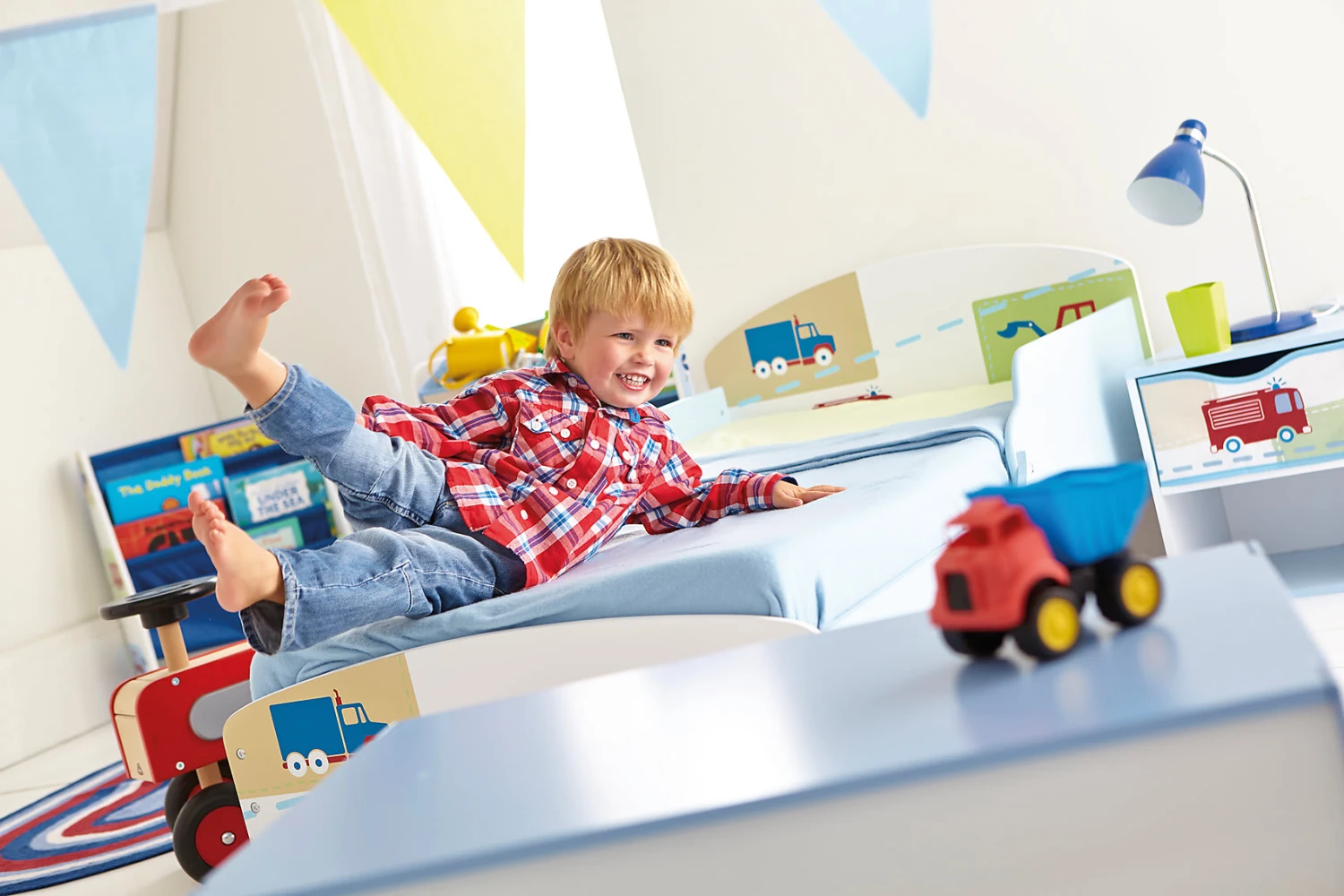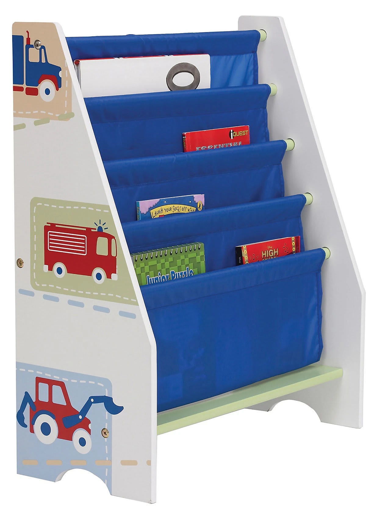 Das niedliche Bücherregal im Auto Design passt perfekt in das Kinderzimmer kleiner Autoliebhaber. In den Taschen können Bücher in den unterschiedlichsten Größen aufbewahrt und im Kinderzimmer besonders präsentiert werden.