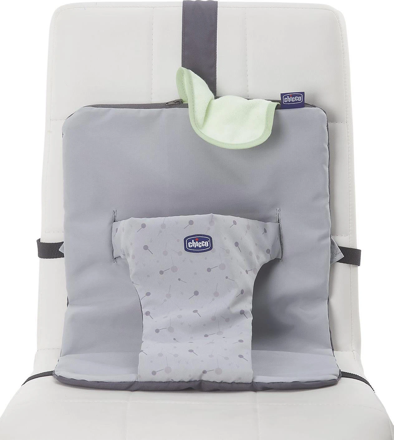 Diese Sitzerhöhung „Wrappy“ aus dem Hause CHICCO eignet sich nicht nur für zu Hause, sondern kann auch überallhin mitgenommen werden. Sie ist mit einem Staufach ausgestattet und verfügt über eine wasserabweisende Beschichtung. Die Sicherheitsgurte zur Befestigung der Sitzerhöhung eignen sich für herkömmliche Stühle.