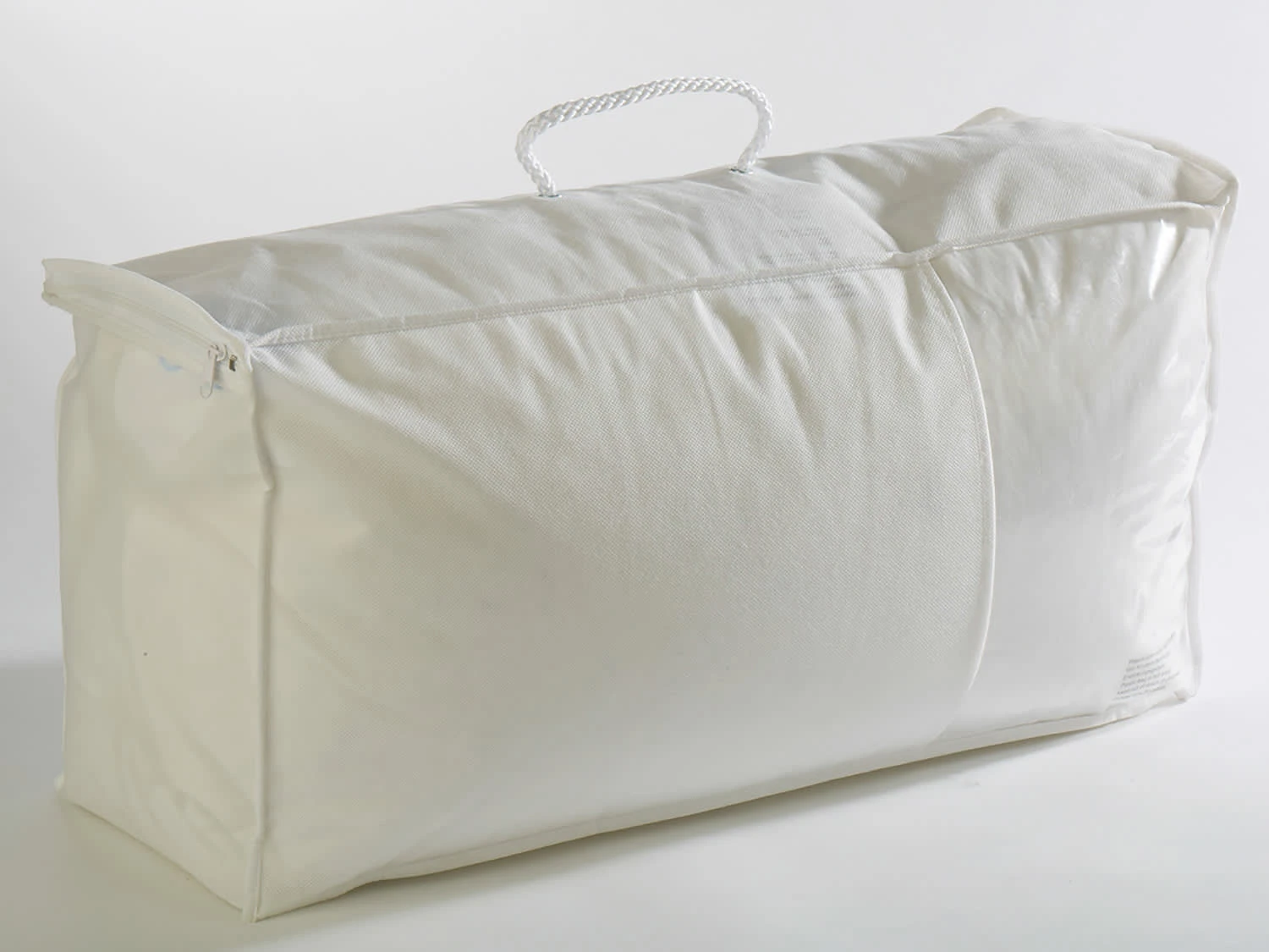 Der Bezug besteht aus 100 % Baumwolle und einer Füllung: Halbdaune (Federn 85% und Daunen 15%).