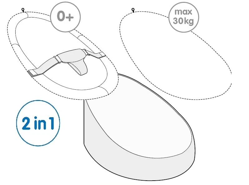 Für das größere Kind ist eine zusätzliche Auflage ohne Haltegurt im Lieferumfang enthalten.
