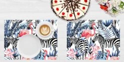 Tischsets I Platzsets „Tropische Zebras Und Flamingos“ (L)30 X (B)40