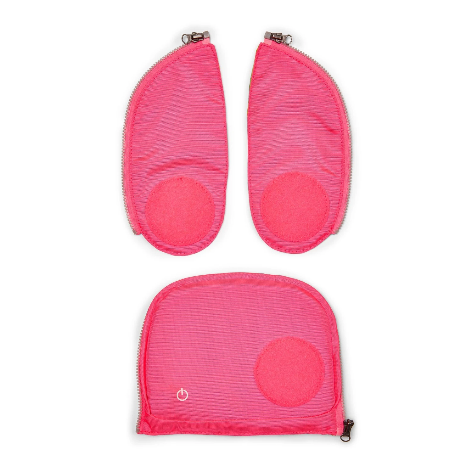 Das dreiteilige Sicherheitsset für den Ergobag-Schulranzen: 2 Seitenteile, 1 Vorderteil. Mit floureszierenden Flächen und Klettflächen für die Kletties für zusätzliche Sichtbarkeit. Sehr praktisch für Kinder, die mit dem Fahrrad etc. zur Schule fahren. 19 LEDs sorgen für mehr Sicherheit im Straßenverkehr.