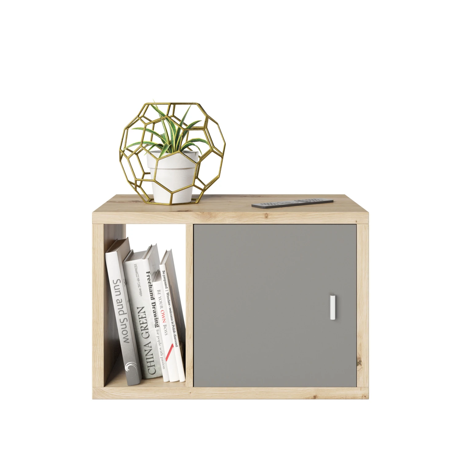 Fortuna – SET Beistelltisch / Nachtisch, Inkl. Türeinsatz, Artisan Eiche, B/H/T: 58×39,2x34cm