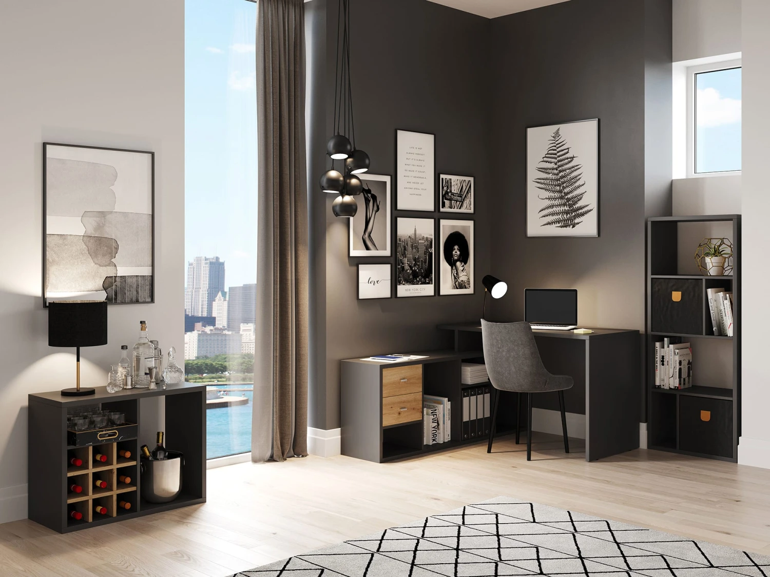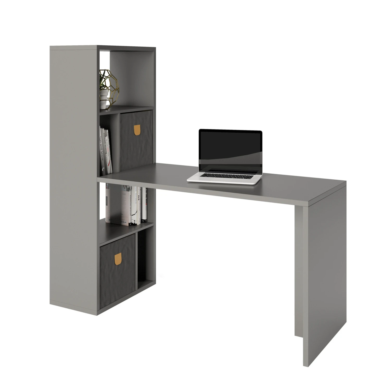 Fortuna – SET , Regal Mit 6 Fächern Inkl. Schreibtischanbau, Grau, B/H/T: 58×146,6x34cm