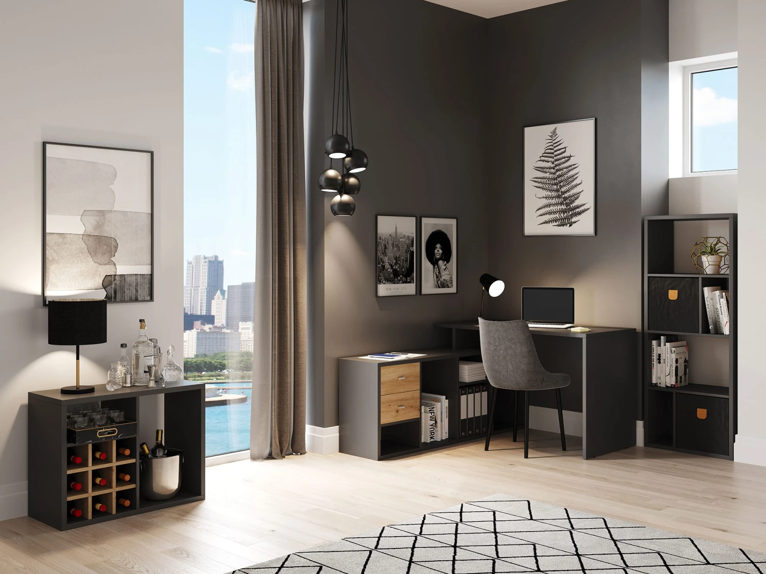 Dieses praktische Regal mit 6 Fächern kann als Raumteiler oder einfaches Bücherregal verwendet werden. Das Regal mit asymmetrischer Fachanordnung ist in einem zeitlos modernen Stil gehalten. Die Regale sind in verschiedenen Grössen verfügbar. Ob für Zuhause oder fürs Büro, die Regale der Systemserie ‚FORTUNA‘ bieten viele funktionale Kombinationsmöglichkeiten für Ihr individuelles Einrichten und passen zu jedem Wohntyp. Alle ‚FORTUNA‘ Wohnelemente sind farblich und im Design aufeinander abgestimmt. Der Artikel wird mit einem Türeinsatz und einem Schubladencontainer ohne Dekoration geliefert.