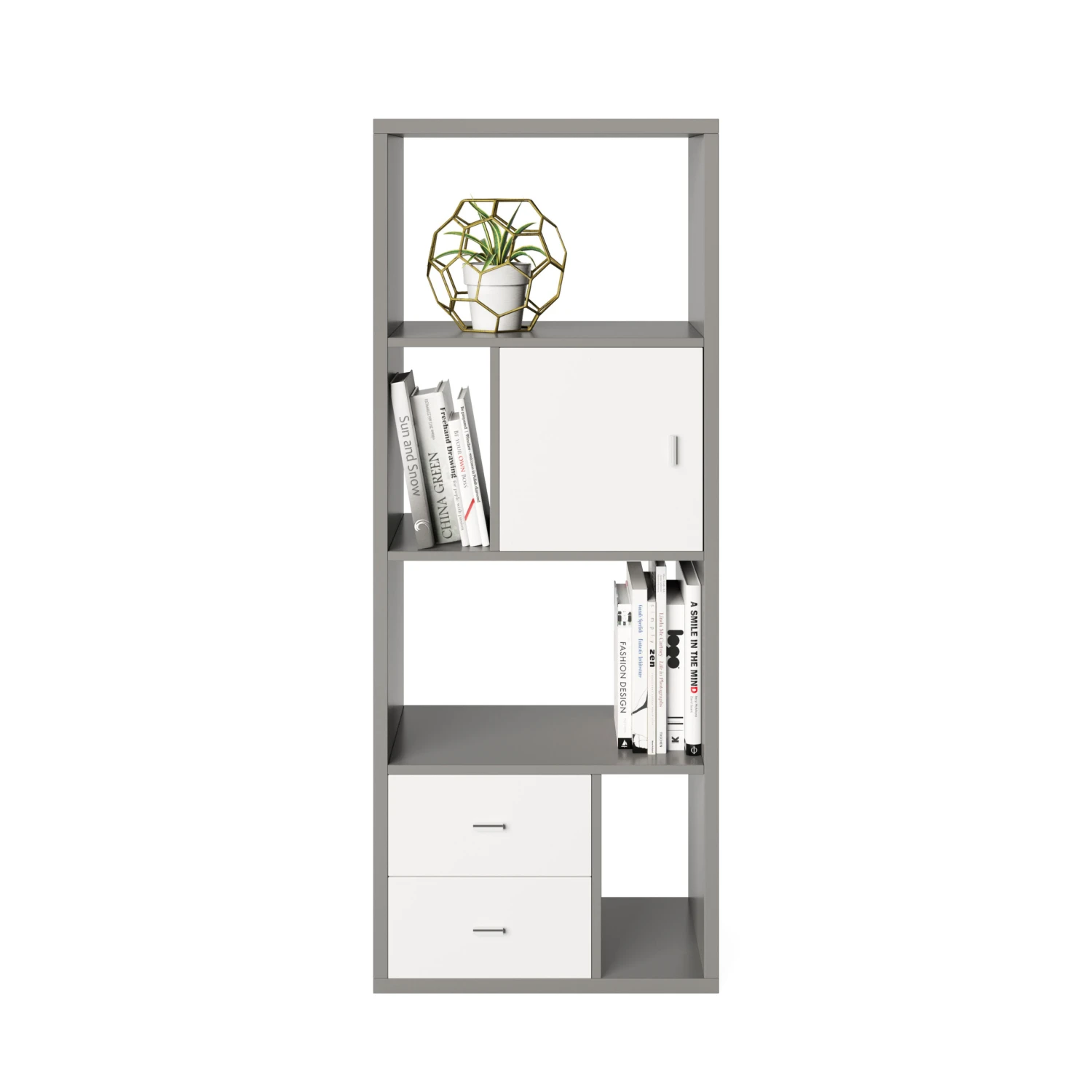 Fortuna – SET Regal Mit 6 Fächern Inkl. Tür-/Schubladeneinsatz, Grau, B/H/T: 58×146,6×34 Cm