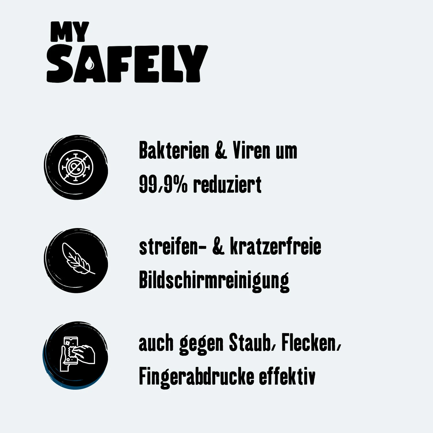 Reinigungstücher mit desinfizierender Wirkung, die speziell zur Desinfektion von empfindlichen Oberflächen wie Handy- und Tablet Displays entwickelt wurden. Sie befreien schonend und ohne Alkohol alle Displays und empfindliche Oberflächen von Viren und Keimen, ohne die empflindliche Beschichtung der Geräte oder Flächen anzugreifen. Besonders wichtig für die am häufigsten berührten Oberflächen Ihrer Handys und Tablets.