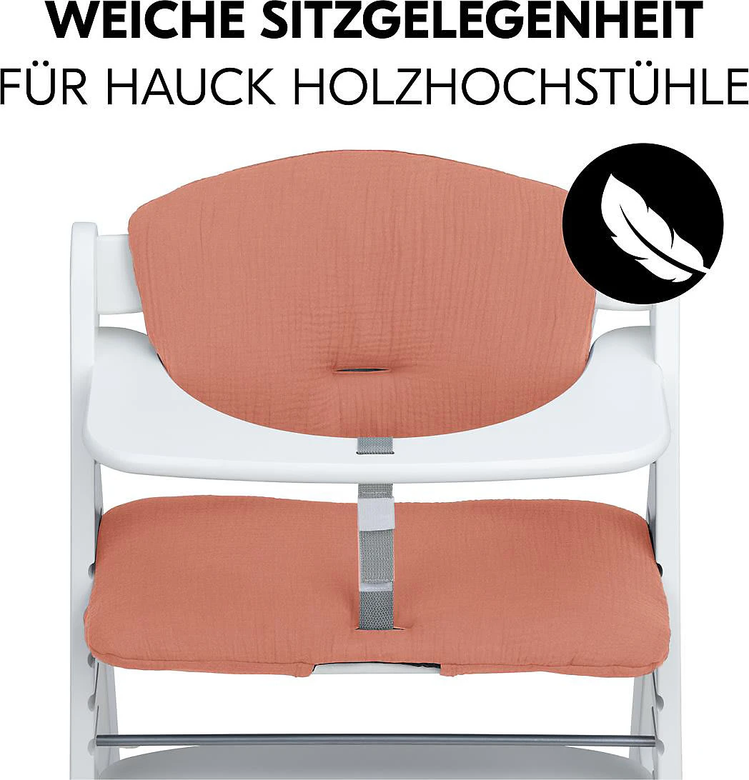 Mit der Sitzauflage Alpha Highchair haben es Kinder in ihrem hauck-Hochstuhl noch bequemer. Die zweiteilige Sitzauflage dient als Sitzverkleinerer und weiche Unterlage.