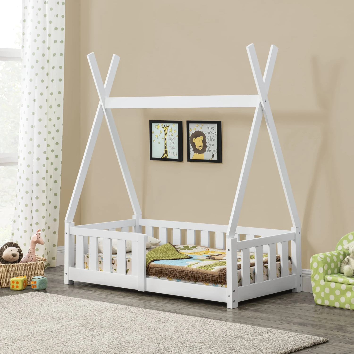 Das stabile Kinderbett aus Kiefernholz verschönert durch seine Optik jedes Kinderzimmer und bietet einen angenehmen Schlafplatz.