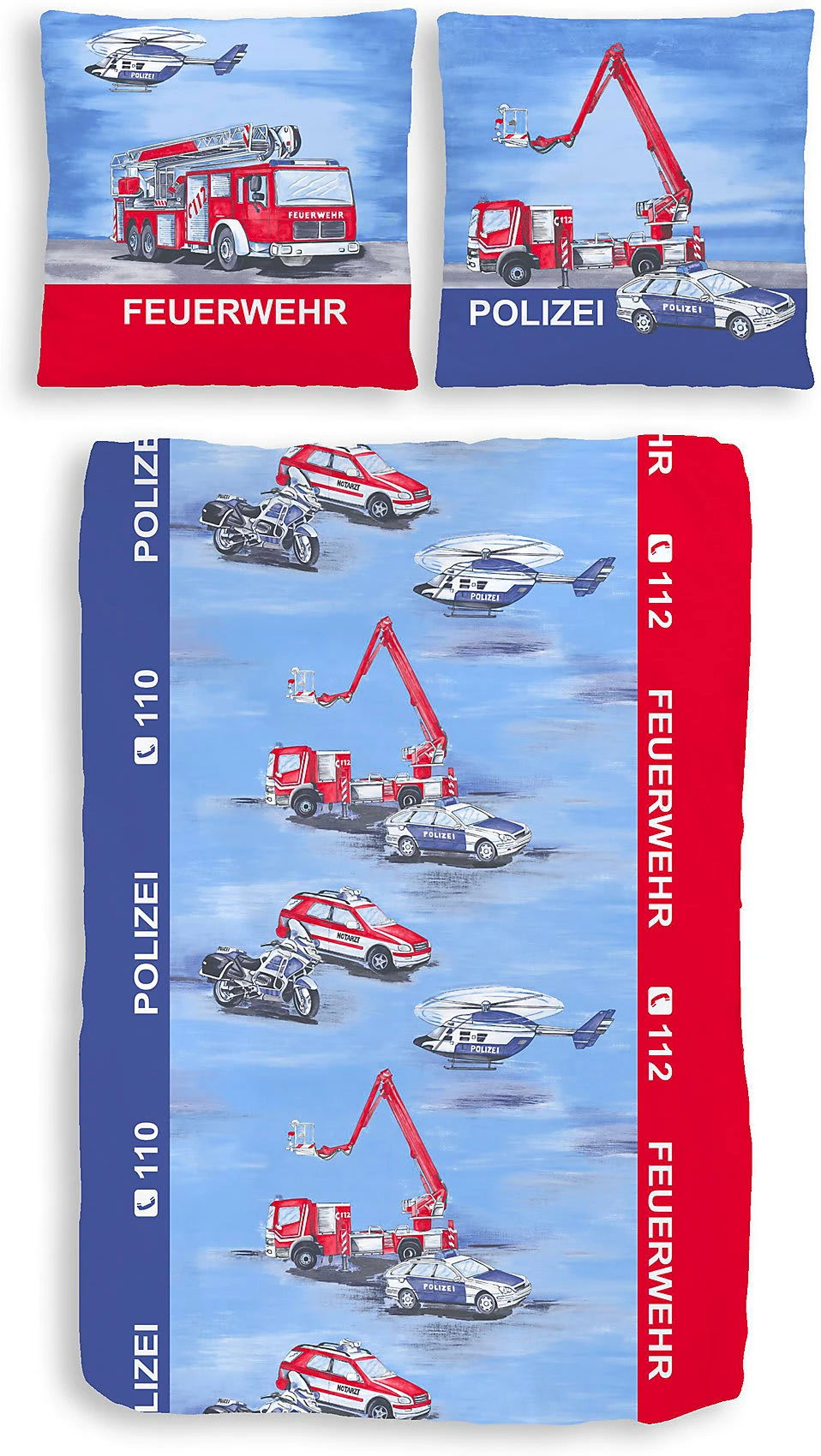 Auf ins kuschelige Traumland! Diese tolle Bettwäsche mit Polizei- und Feuerwehr-Motiv schenkt sorgenfreien Schlaf. Die zweiteilige Garnitur mit Reißverschluss besteht aus einem Kissenbezug und einem Bettbezug. Eine hohe Feuchtigkeitsaufnahme wird dank der Renforcé-Webart der Baumwolle ermöglicht und das Gewebe wirkt temperaturausgleichend. So wird dem Kind ein besonders großer Schlafkomfort geboten.