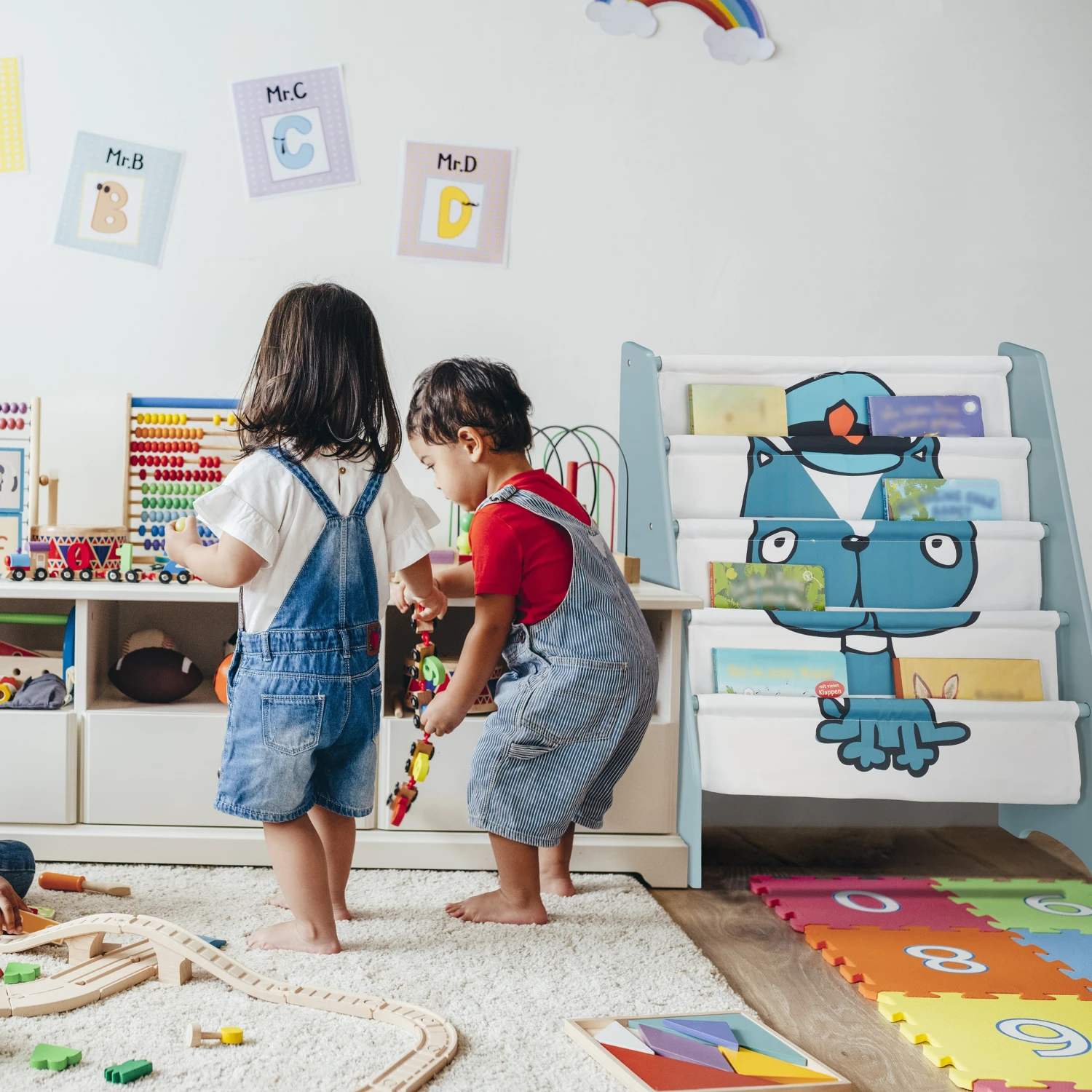 Mit diesem Kinderbücherregal animierst Du Deine Kleinen zum Lesen. Die Cover von Büchern oder Zeitschriften zeigen im Aufbewahrungsregal nach vorne, sodass das Leseangebot gut sichtbar ist. Die kindgerechte Höhe und das offene Design ermöglichen es auch Kleinkindern, sich selbstständig ein Buch auszuwählen und herauszunehmen. Das niedliche Motiv mit Polizeihund begeistert sowohl Mädchen als auch Jungen und macht das Spielzeugregal zu einem schönen Blickfang im Kinderzimmer.