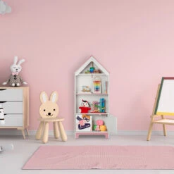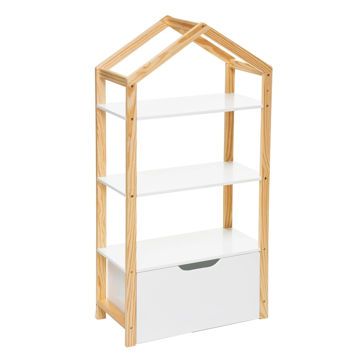 Organisiert: Der schrankförmige Schrank ist mit drei geräumigen Regalen und einer Schublade ausgestattet. Dank eines so organisierten Raums kann Ihr Kind sein Spielzeug leicht sortieren und organisieren.