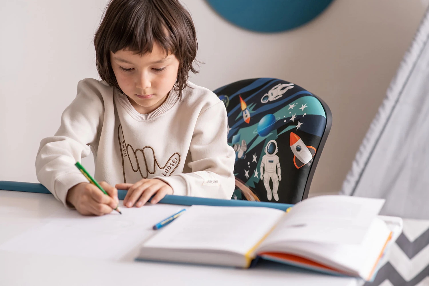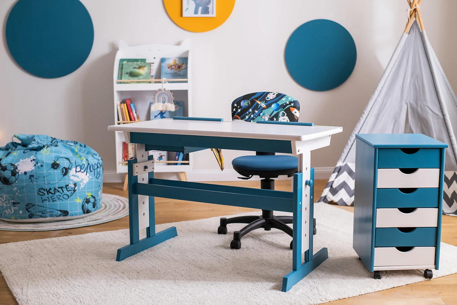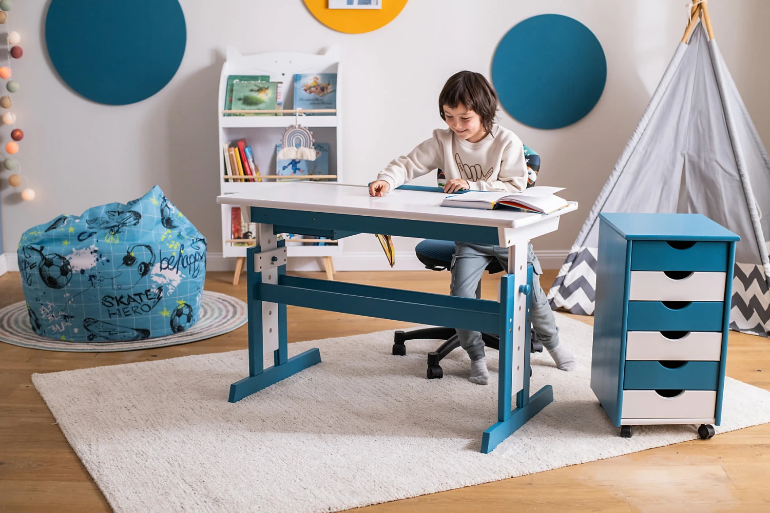 Der Schreibtisch PIJII aus der myToys-COLLECTION von Inter Link ist der ideale Begleiter für das Kinder- und Jugendzimmer. Viele Funktionen erleichtern das Arbeiten, Basteln oder Spielen. Die Tischplatte kann nicht nur in der Höhe, sondern auch in der Neigung verstellbar, so dass stets ein ergonomisches Arbeiten möglich ist. Das Schubfach ist in griffgünstiger Position montiert und bietet Stauraum für Hefte und Bücher.