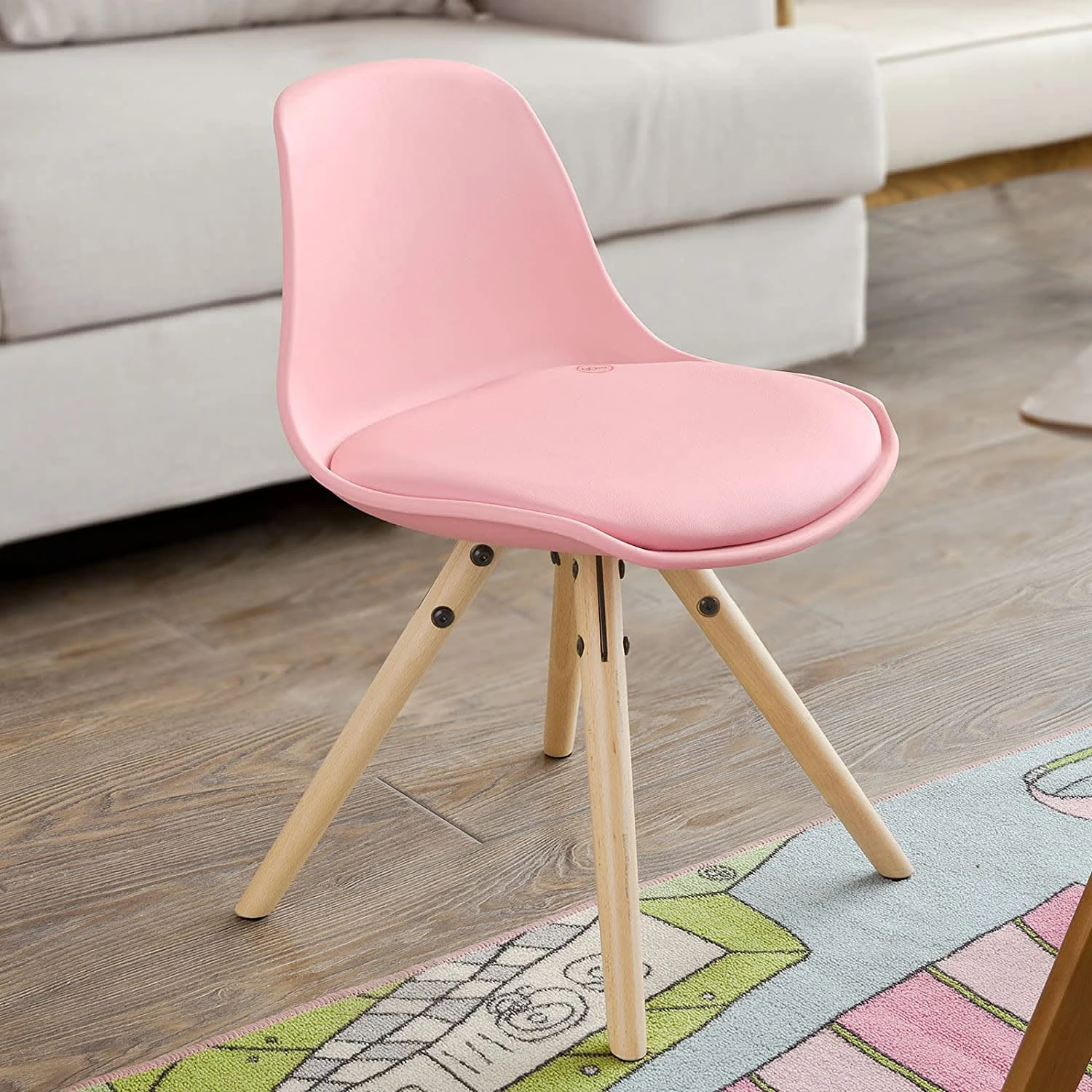 Durch das schlichte, minimalistische Design, passt dieser Stuhl zu jeder Einrichtung. Mit einer Sitzfläche von ca. 34 x 37cm und einer Sitzhöhe von 35cm, bietet dieser Stuhl Platz für Kinder in jedem Alter.