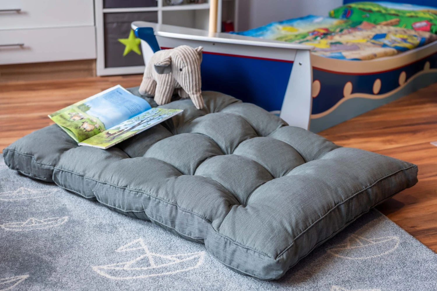 Das Bodenkissen ist weich gepolstert und bietet viele Einsatzmöglichkeiten.