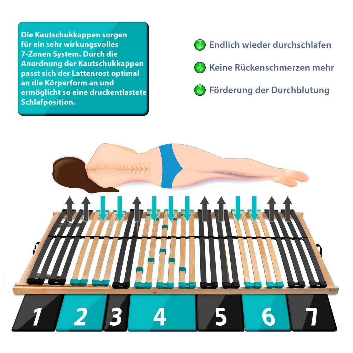 – 7-Zonen Schulter- und Beckenkomfort durch weichere Kappen
