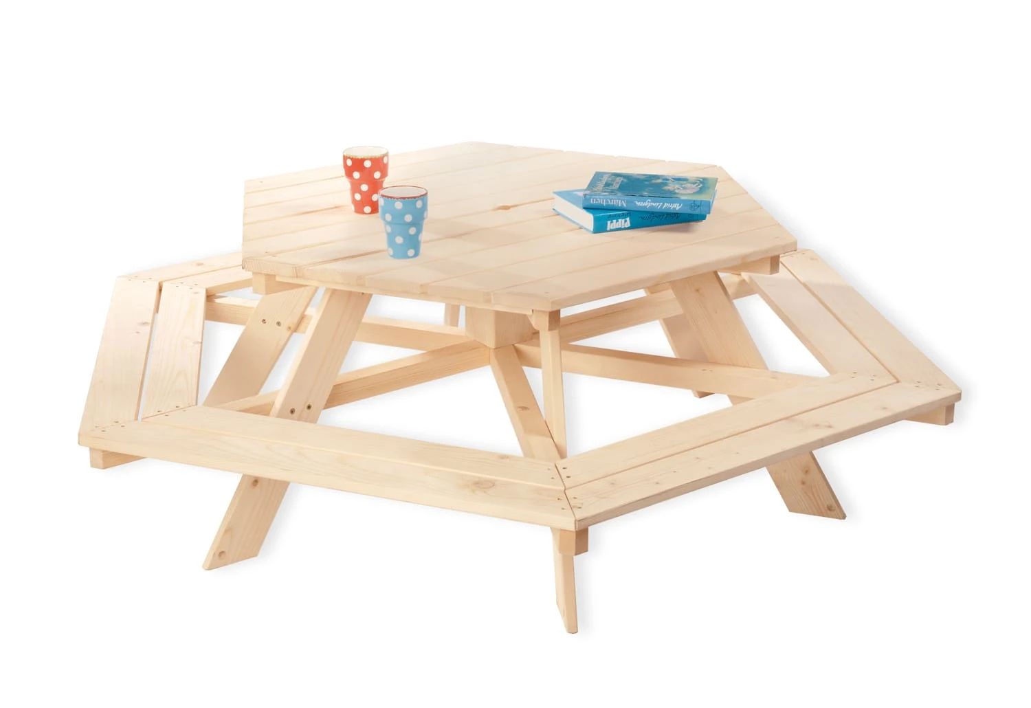 Pinolino 7-tlg. Kindersitzgarnitur „Nicki 6-Eck“ In Natur