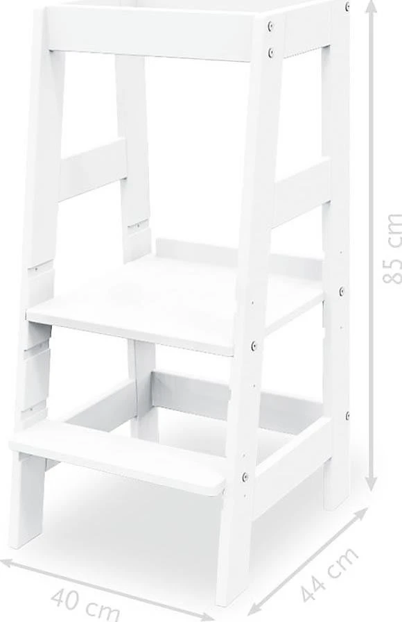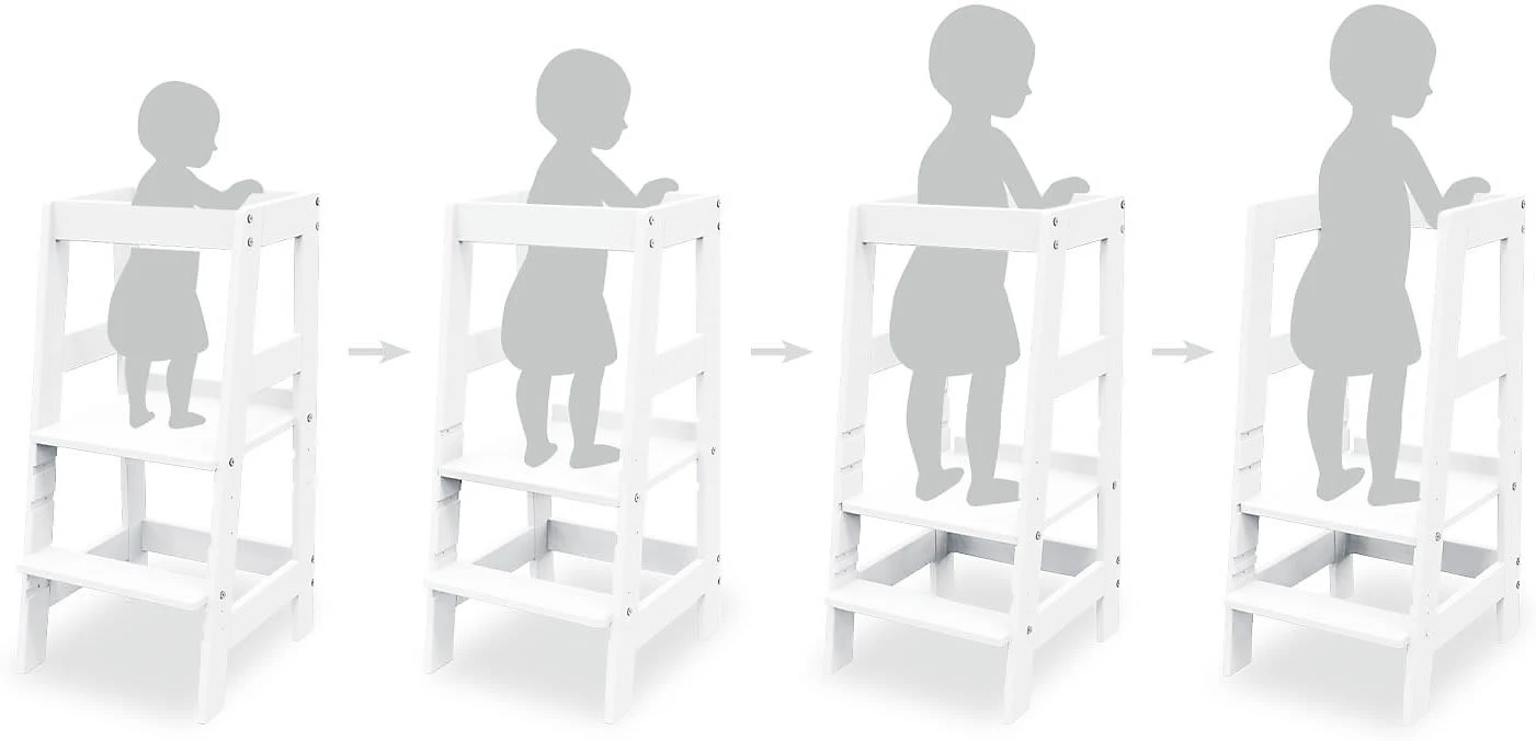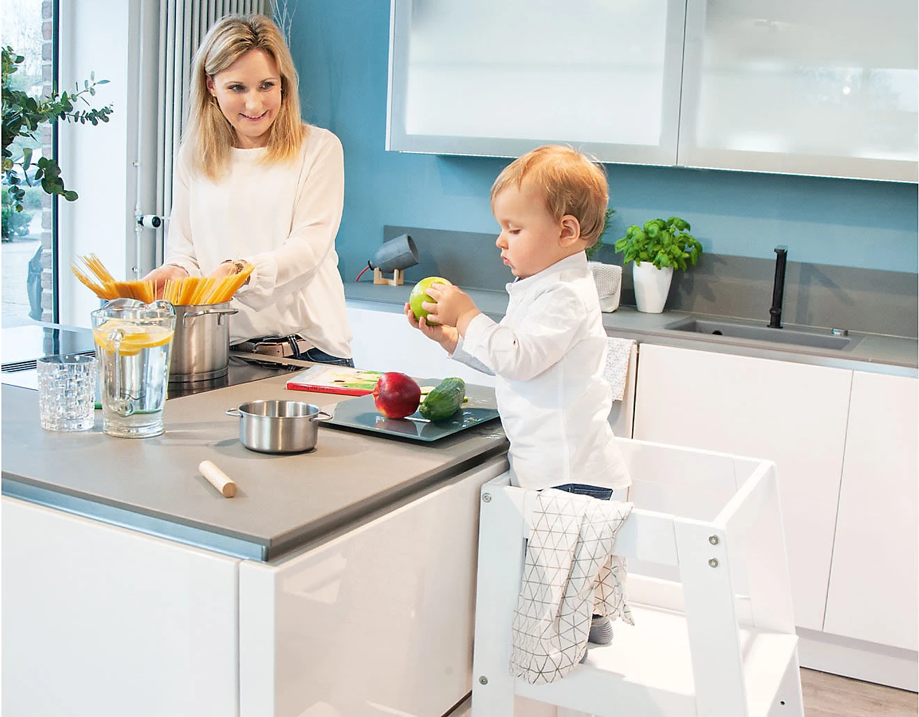 Der Pinolino Lernturm ‚Fino‘ mit höhenverstellbarer Trittstufe von 16 auf 19 und 22 cm sorgt dafür, dass Kinder sicher und selbstständig den Lernturm hochsteigen können. Der umlaufende Rausfallschutz verhindert dabei zuverlässig ein Herunterfallen oder ins „Leere“ treten. Dank der dreifach höhenverstellbaren Trittfläche von 32 auf 39 und 45 cm kann sich der Lernturm individuell und flexibel an die Größe der Kinder anpassen. So können sie beim Kochen oder Backen jederzeit auf Augenhöhe zuschauen oder sogar mithelfen. Dadurch, dass Kinder dank des Lernturms beobachten und mithelfen können, fördert ‚Fino‘ die Entwicklung der kleinen Entdecker*innen. Mit wenigen Handgriffen kann er später, wenn die Kinder älter werden, zum praktischen Tritthocker umgebaut werden. Pinolino erfüllt seit 1997 Kinderträume und vertreibt Kindermöbel, Accessoires und Spielwaren.