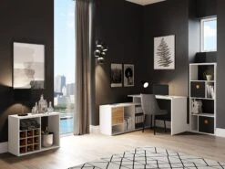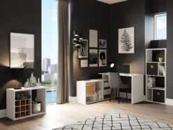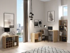 Fortuna – SET , Regal Mit 6 Fächern Inkl. Schreibtischanbau, Grau, B/H/T: 58×146,6x34cm
