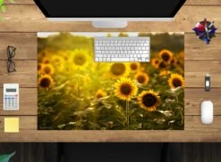 Schreibtischunterlage „Sonnenblumenfeld Im Abendlicht“ In Gelb (L)100 X (B)50