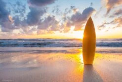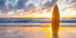Schreibtischunterlage „Surfbrett Am Strand“ In Blau (L)100 X (B)50
