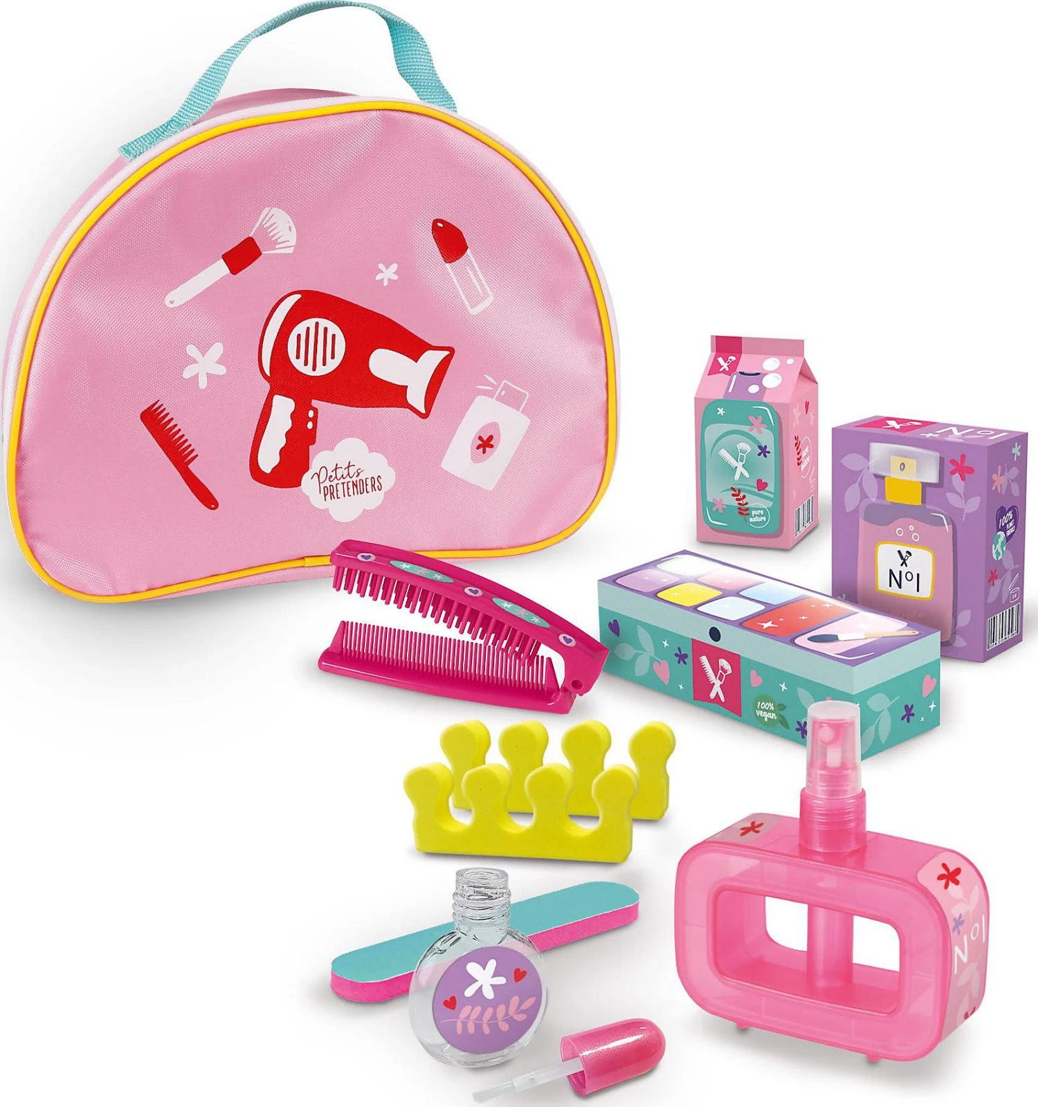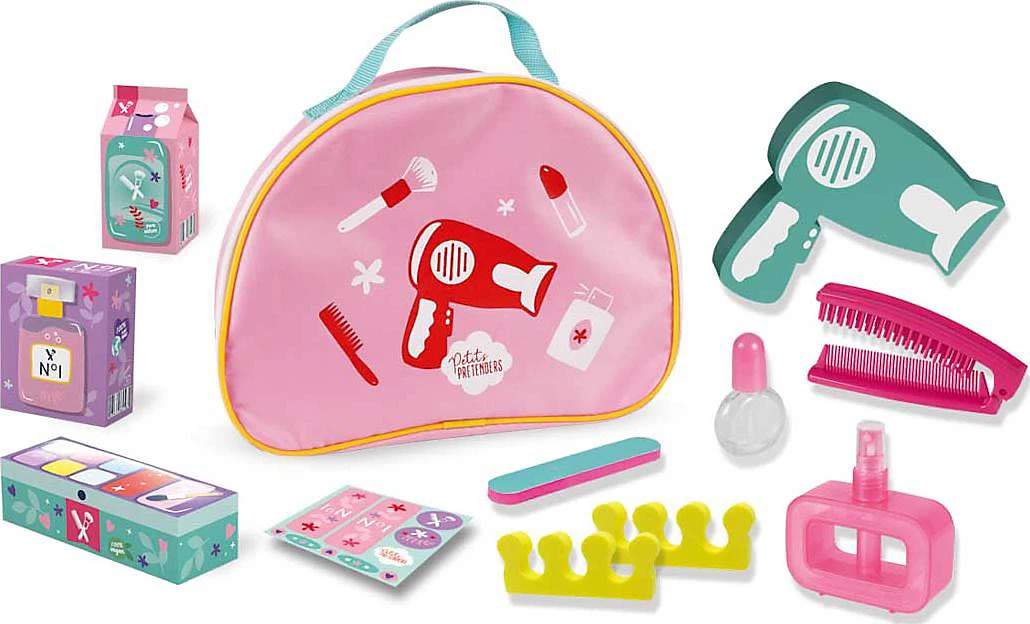 Mit diesem umfangreichen Beautykoffer-Spielset können kleine Stylist*innen ihren Kuscheltieren oder Puppen einen neuen Look verpassen! In dem praktischen Köfferchen sind ein Schaumstoff-Föhn, ein Kamm, Spielzeug-Kosmetik und weiteres Zubehör enthalten.