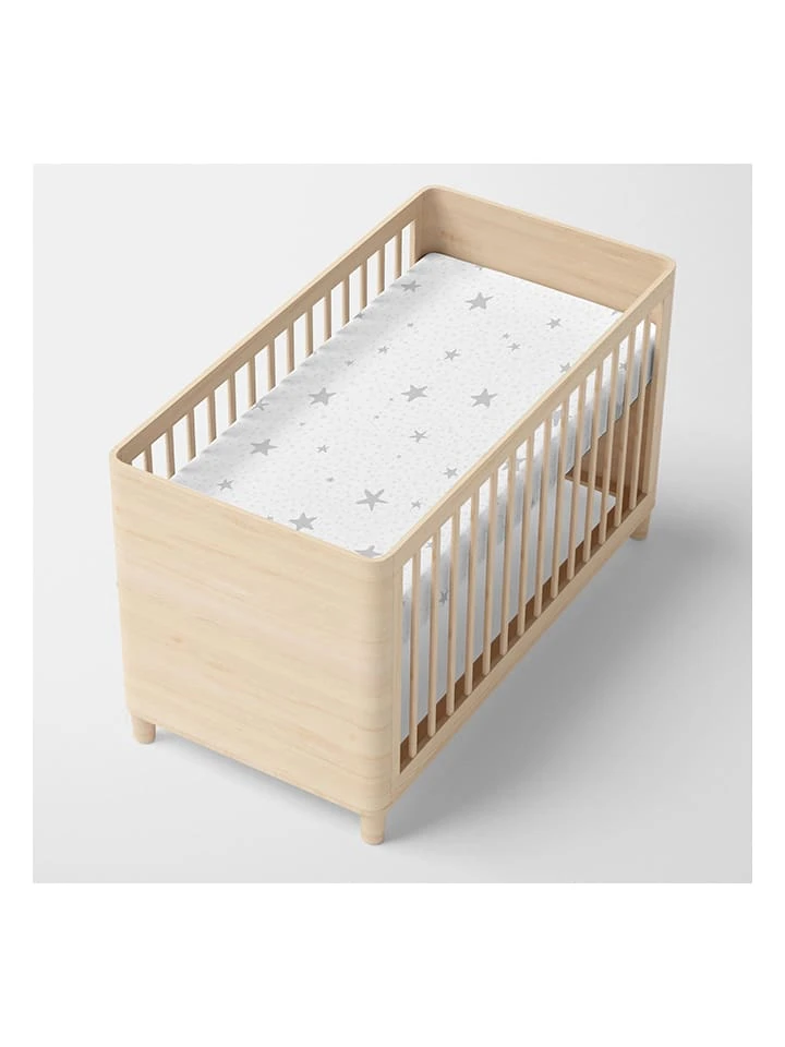 Spannbettlaken „Little Stars“ In Weiß/ Grau