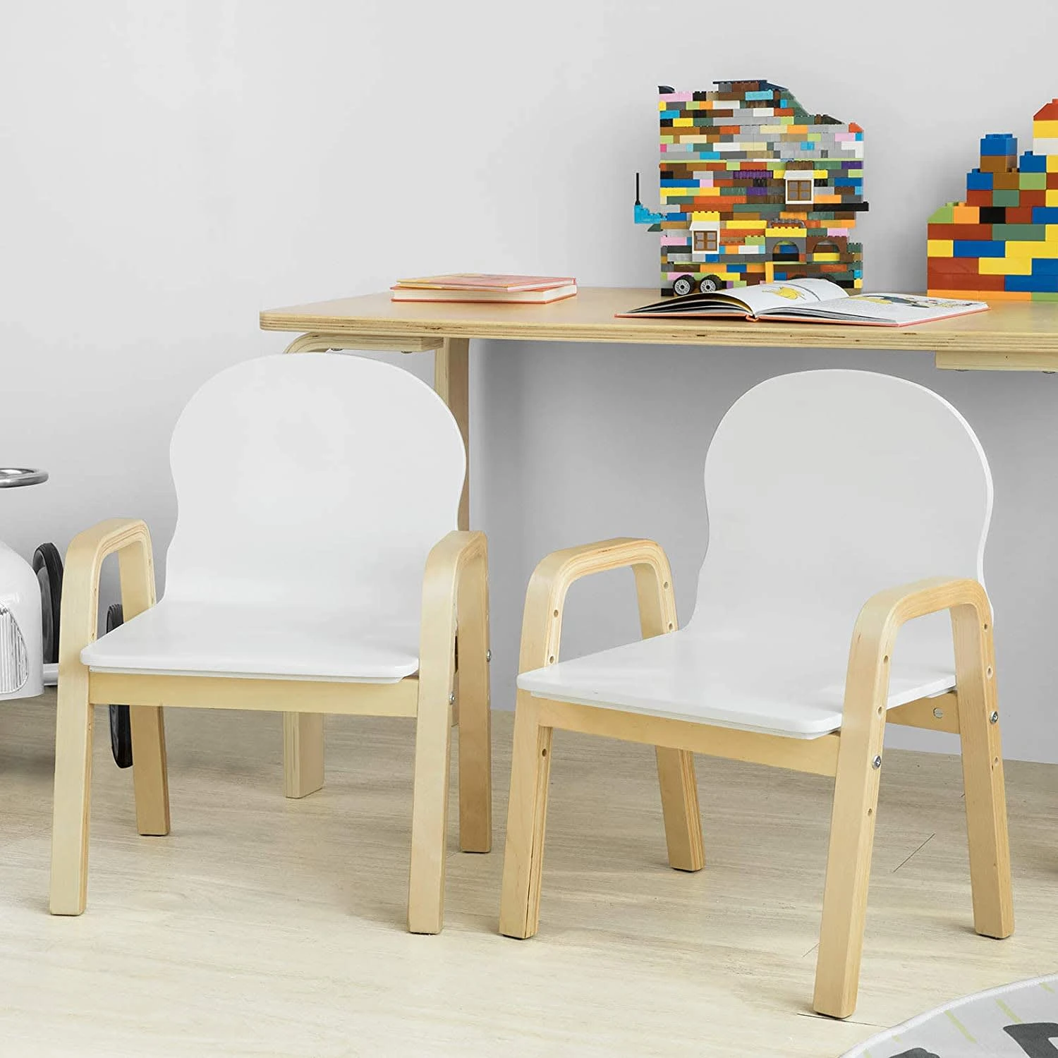 Die Stühle bestehen aus robusten und zuverlässigen Materialien und sind absolut sicher für Ihr Kind. Die abgerundeten Ecken sind ein Garant für Sicherheit und Komfort des Kindes. Wenn Ihre Kinder diesen Stuhl eigenständig hin und her schieben/tragen, kann der Boden mit den Filzgleitern vor Kratzer geschützt werden.