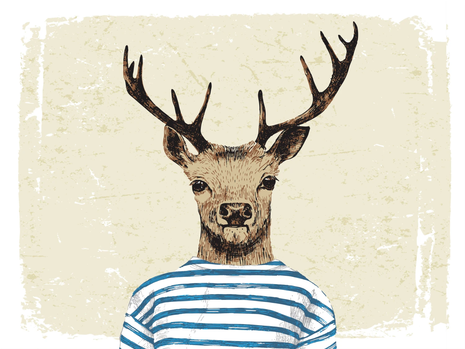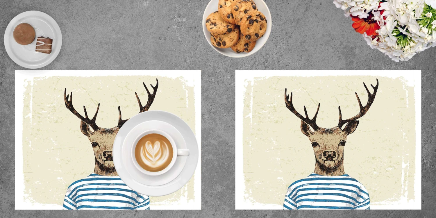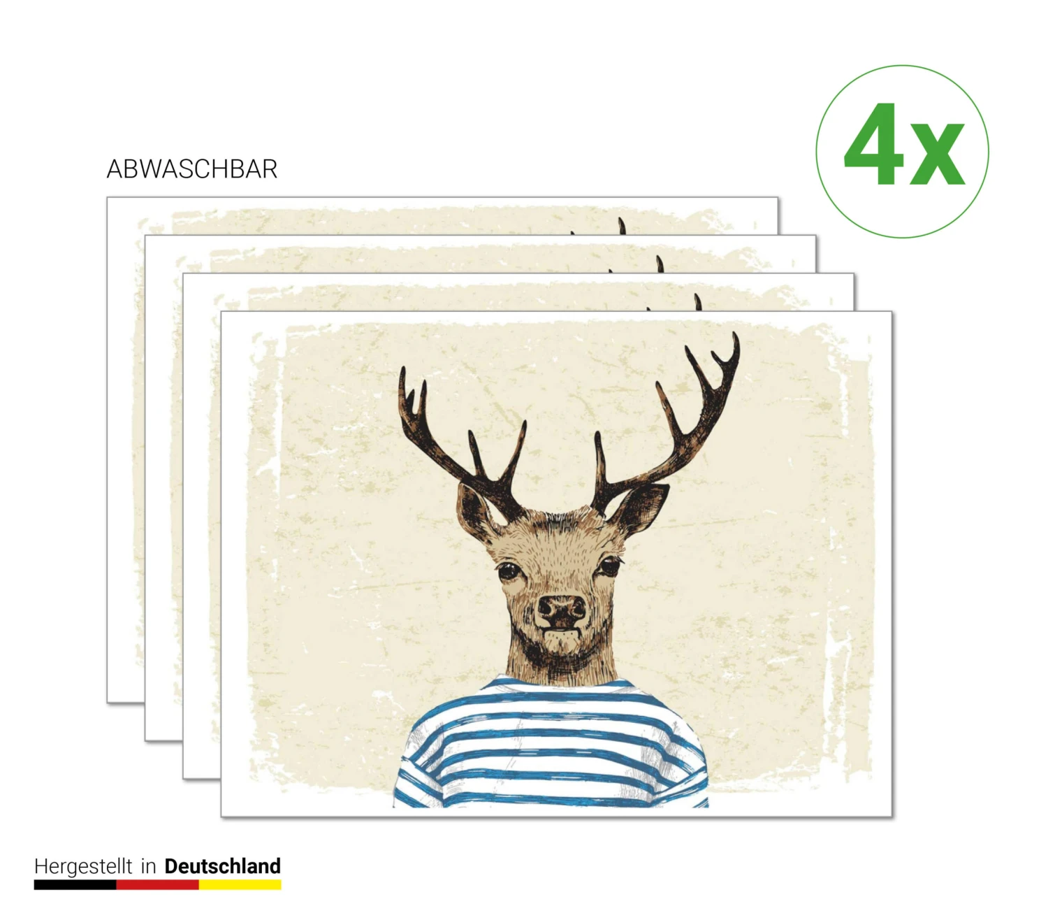 Tischsets I Platzsets „Hirsch Mit Gestreiftem Shirt“ (L)30 X (B)40