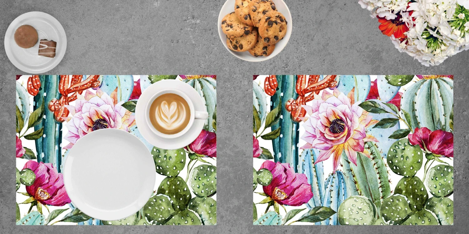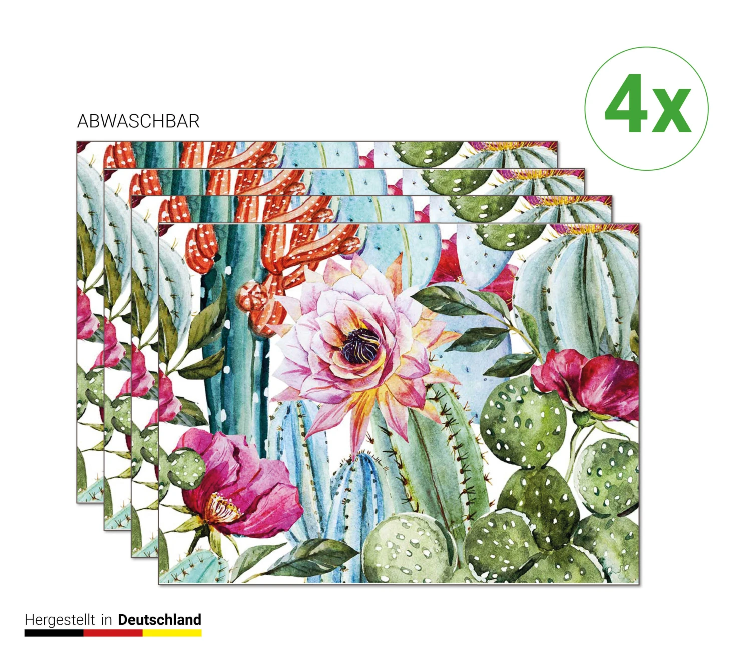 Tischsets I Platzsets „Tropische Blüten Mit Kakteen“ (L)30 X (B)40